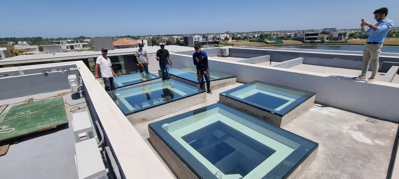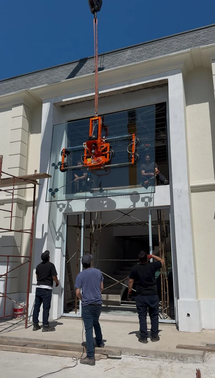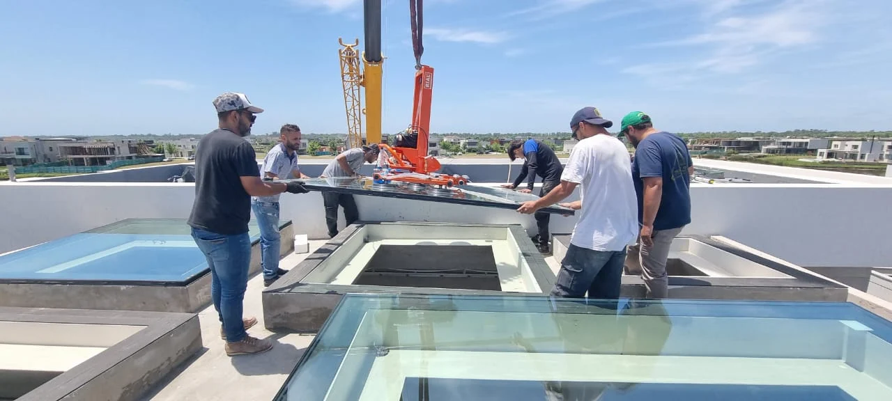 Utilizamos ventosas, sistemas de izaje y herramientas específicas para la manipulación y colocación de vidrios de gran tamaño, incluso en condiciones de difícil acceso.